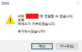 단일 DC에서 DNS서비스 콘솔 연결 시 아래와 같이 엑세스가 거부됨.